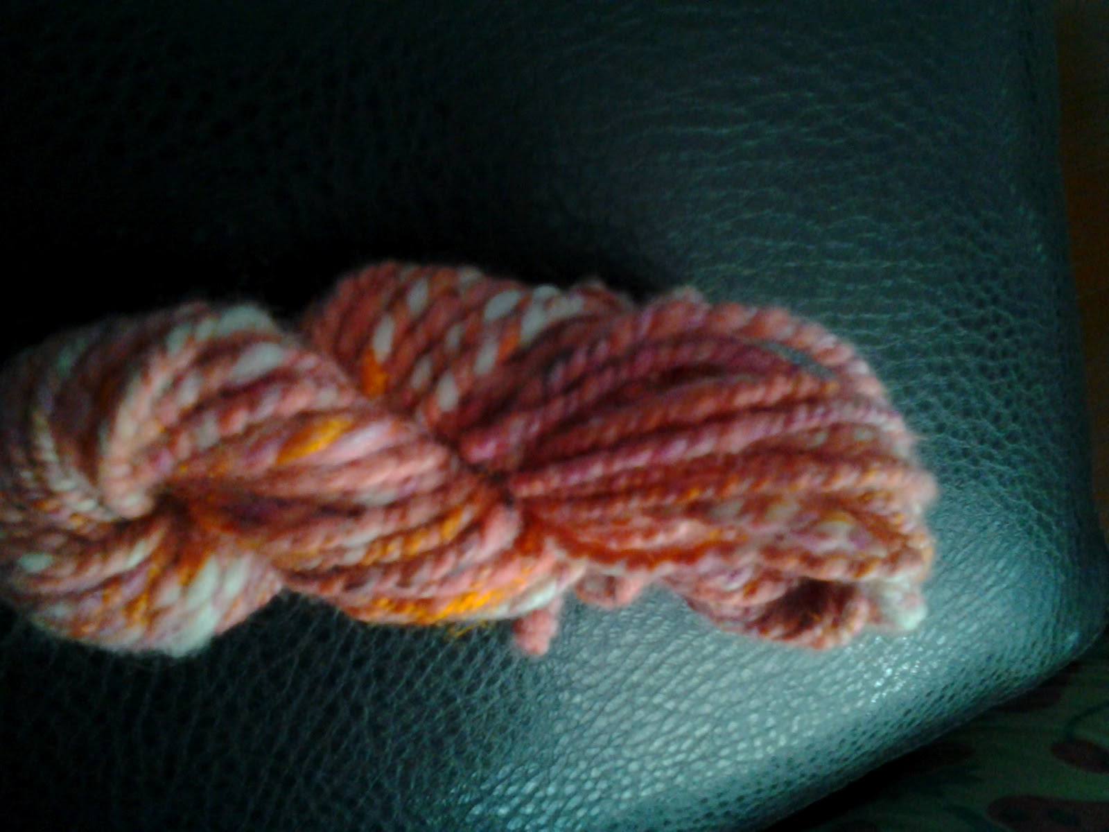 I would have been happy with it, except the white bits (the wool) didn't draft nearly as smoothly as all the other fibers, and so it made for nubbly bits here and there. I felt like if those bits hadn't been there, the results would have been much more consistent. I liked the pink and orange together, though.